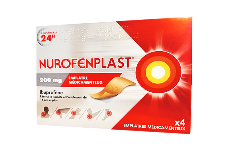 NUROFENPLAST 200 mg est un médicament indiqué dans le traitement symptomatique de courte durée des douleurs locales dans les cas aigus de foulures, entorses ou contusions en cas de traumatismes bénins localisées près de l’articulation du membre supérieur ou inférieur chez les adultes ou les adolescents de 16 ans et plus. L’emplâtre médicamenteux délivre de façon continue de l’ibuprofène au niveau de la région douloureuse pendant 24 heures.