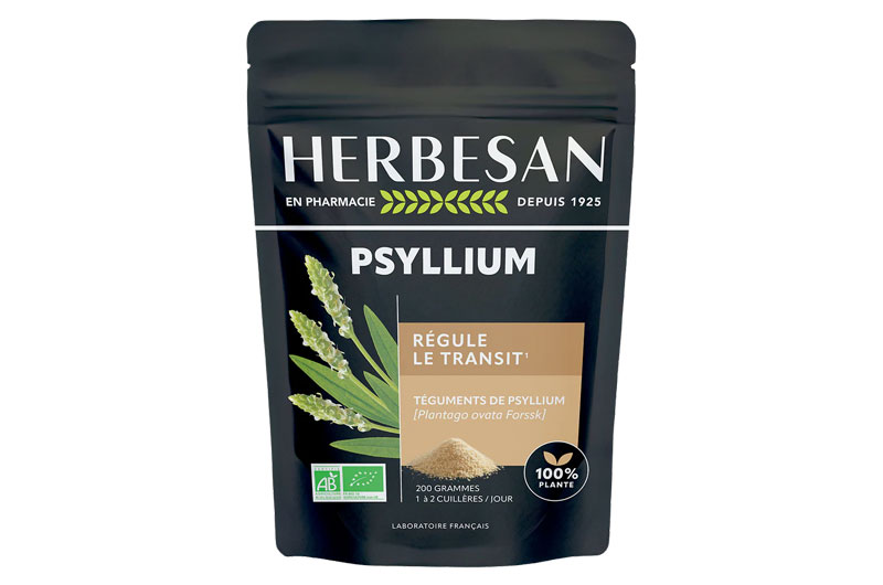 HEREBESAN PSYLLIUM favorise le transit et contribue au bon fonctionnement des intestins. Le PSYLLIUM contribue au ramollissement des selles et à la régularité intestinale. Il peut ainsi être utilisé en cas de constipation occasionnelle.
